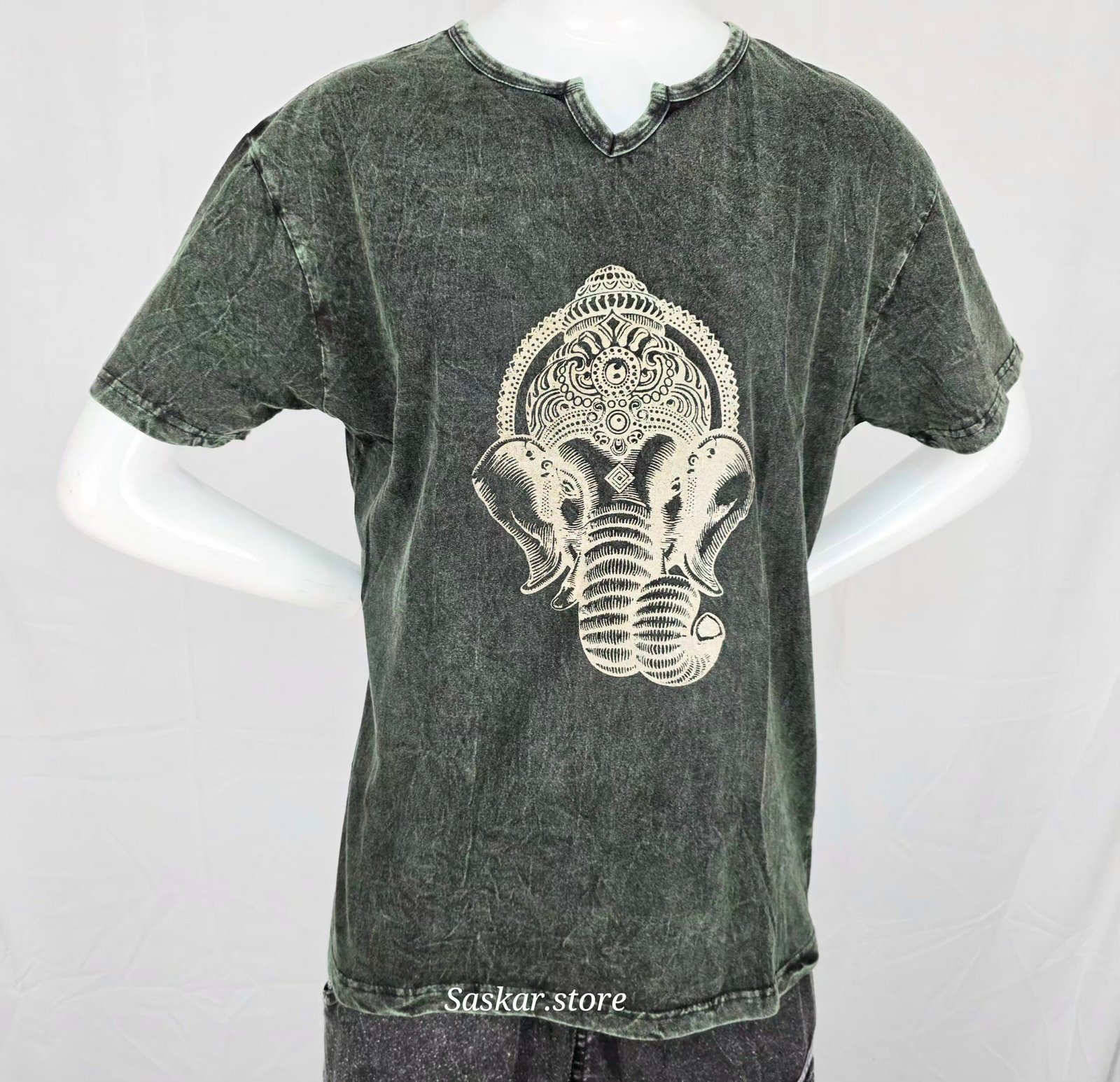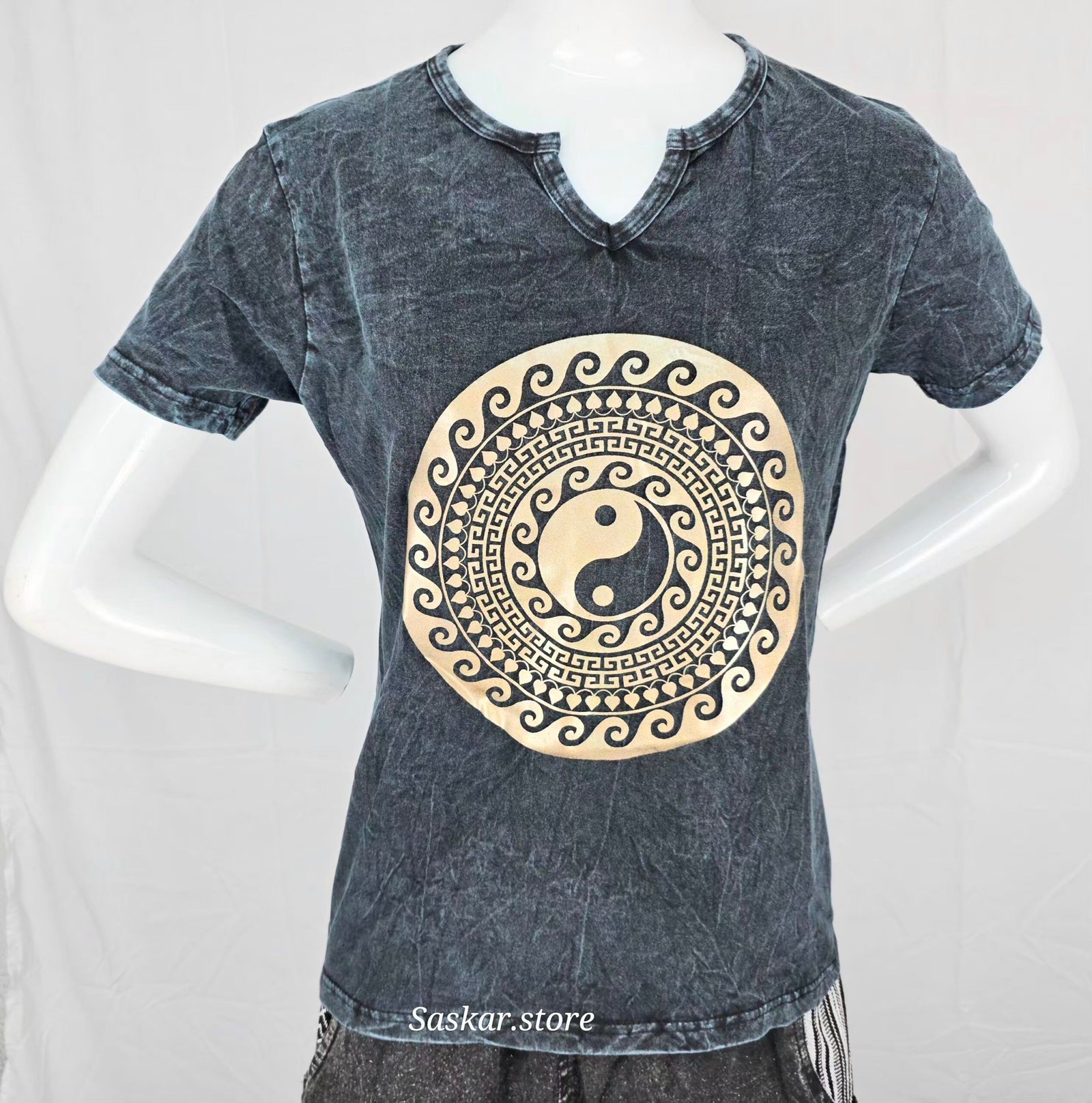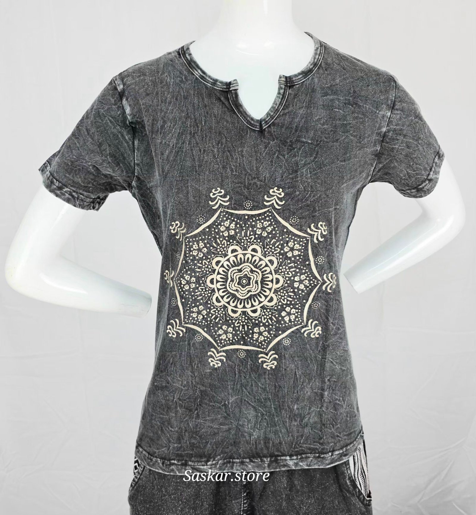 Boho T-shirt with mandala print, stonewashed T-shirt