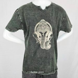 Comfortable boho-style t-shirt with a large mandala print. Features a hem and V-neck. Made from cotton, this t-shirt is perfect for festivals or everyday wear, ensuring you always look stylish. The combination of the basic color and the matching mandala print makes it a versatile piece that easily complements different looks.