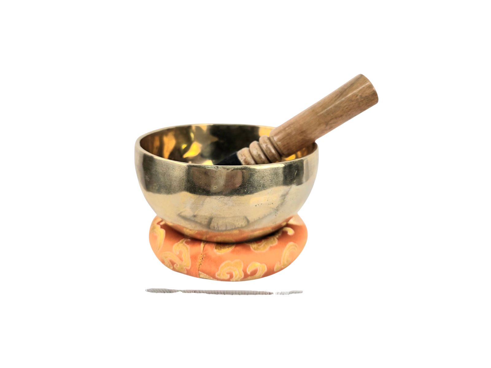Cuenco tibetano auténtico acompañado de un mazo de madera, diseñado para generar sonidos claros y resonantes. Ideal para rituales espirituales, limpieza energética y sesiones de sanación. Su resonancia prolongada favorece la relajación profunda y el enfoque mental.