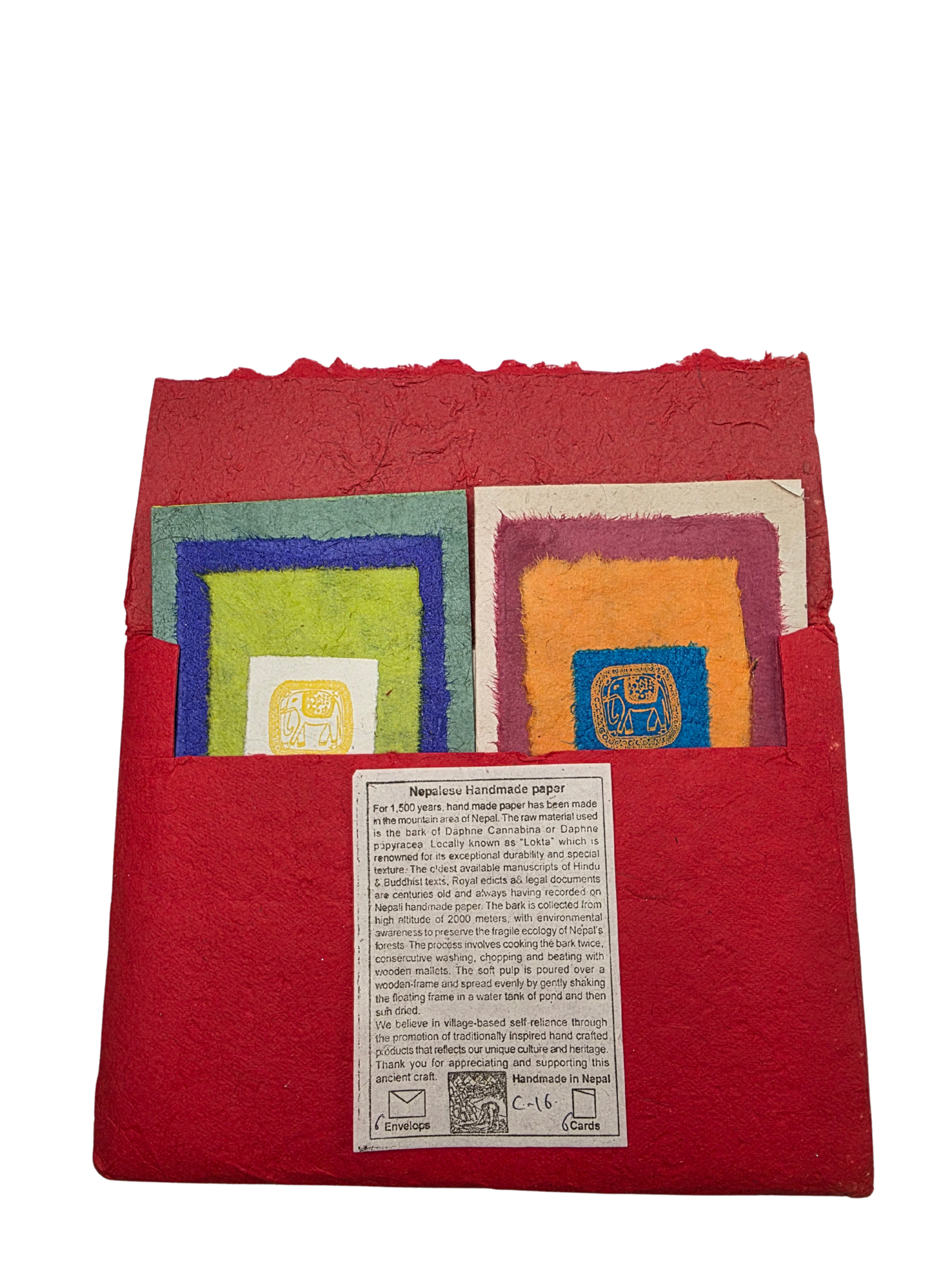Eleva tus mensajes escritos a mano con el alma antigua del Himalaya. Este juego de tarjetas de felicitación hechas a mano en Nepal está elaborado con auténtico papel Lokta, derivado de la corteza del arbusto Daphne que se encuentra a grandes altitudes de más de 6500 pies. Conocido como “Nepali Kagaz”, este papel es un símbolo de cultura y resiliencia, utilizado tradicionalmente para edictos reales y manuscritos budistas sagrados debido a su duración de siglos.