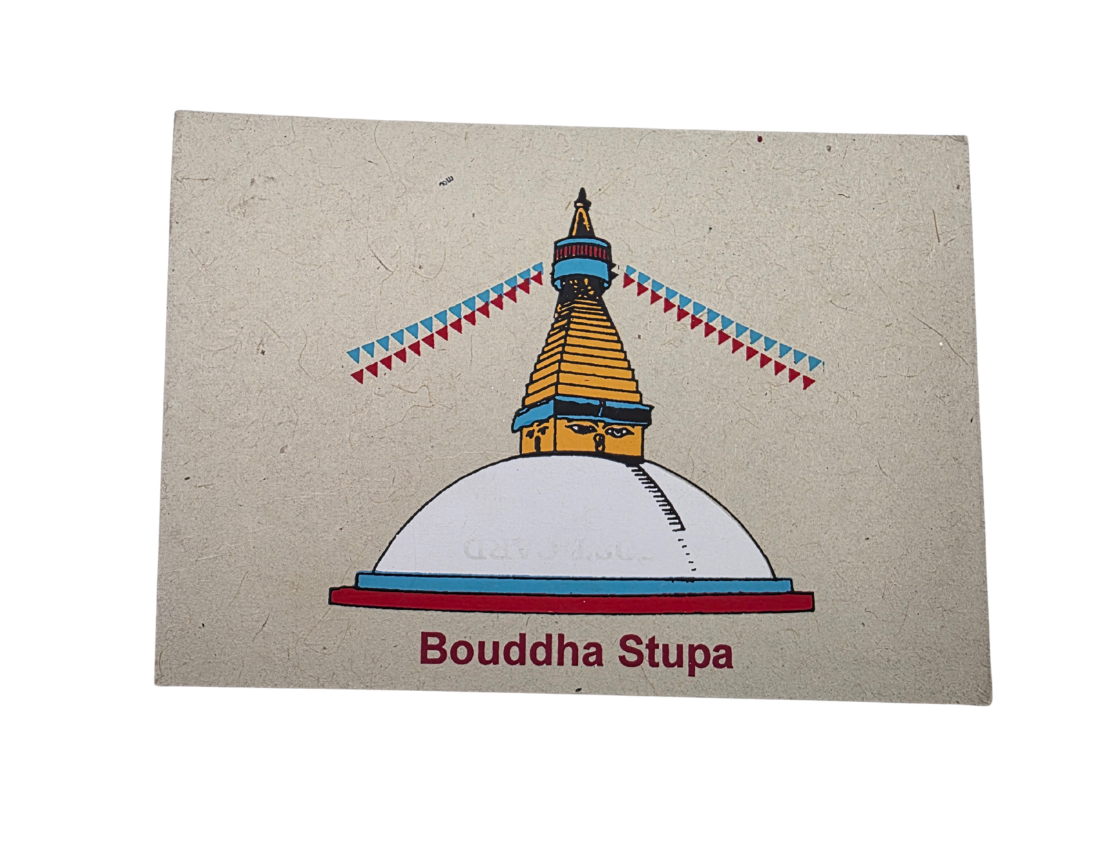 Descripción del Producto : Tarjeta de felicitación de papel hecha a mano Boudhanath Stupa Lokta – Papelería espiritual tradicional nepalí y recuerdo de arte étnico